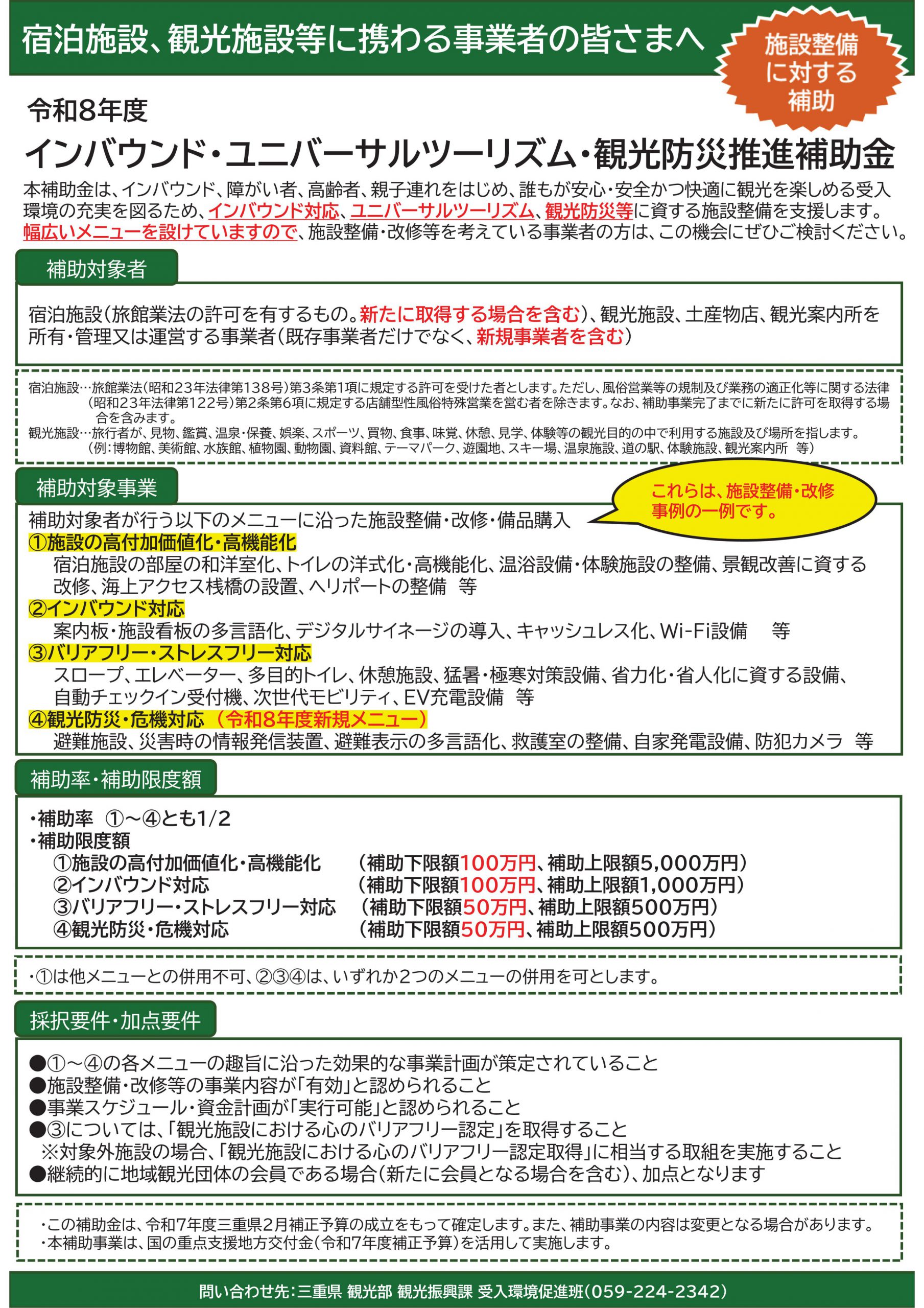 三重県令和8年度インバウンド・ユニバーサルツーリズム・観光防災推進補助金について